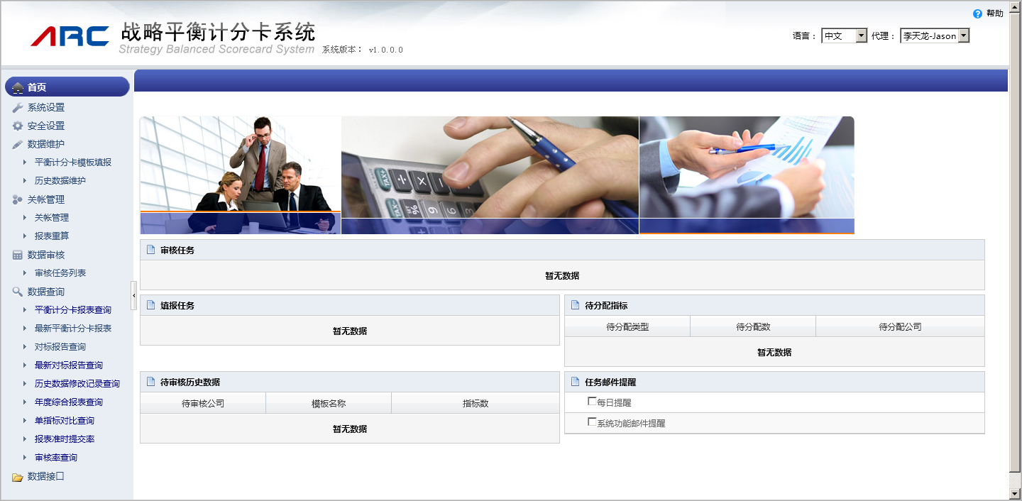 系統流程從戰略規劃開(kāi)始,制(zhì)訂公司戰略要素,維護戰略要素相(xiàng)應的(de)衡量指标、公司的(de)用(yòng)戶、角色、角色授權,最終将指标以模闆的(de)形式下發給填報人(rén)員。填寫人(rén)員填寫模闆指标數據,驗證後提交。由相(xiàng)關的(de)審核人(rén)員按照(zhào)預定的(de)審核流程對指标數據進行(xíng)審核,審核通過後關帳生成報表,供企業(yè)高(gāo)層進行(xíng)決策分(fēn)析。