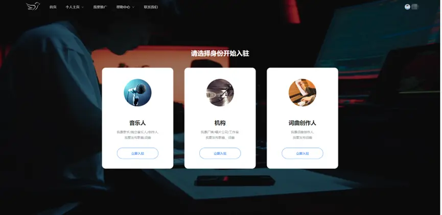 首頁:音(yīn)樂(yuè)人(rén)認證、詞曲作者、已入駐音(yīn)樂(yuè)人(rén)、已入駐詞曲作者、熱(rè)門原創