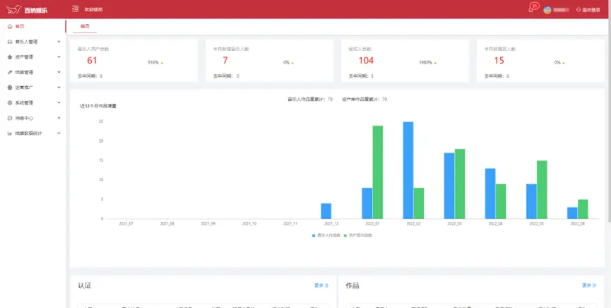 音(yīn)樂(yuè)人(rén)管理(lǐ):注冊認證、認證審核、作品上(shàng)傳、作品審核、授權簽約、藝人(rén)結算