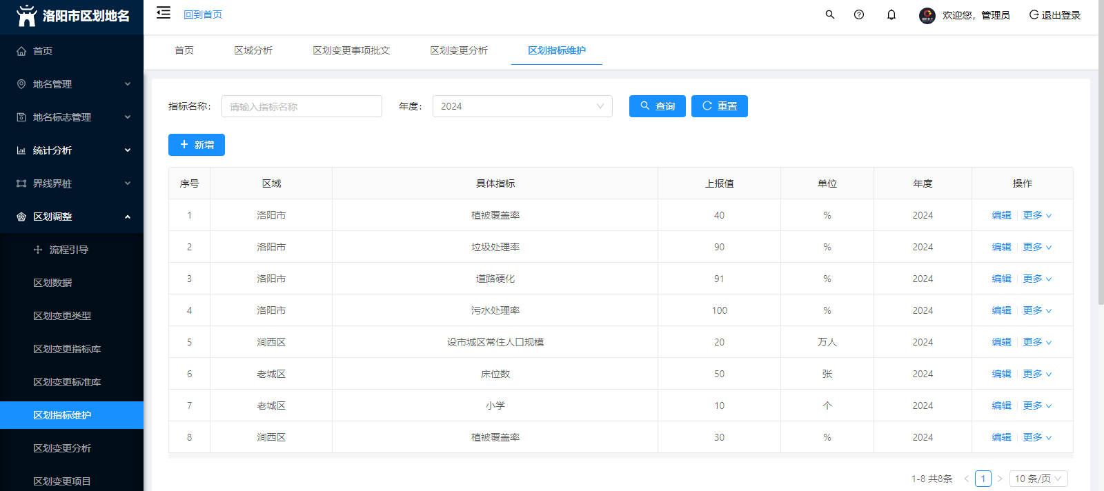 區劃調整:區劃數據、區劃變更類别、區劃變更指标庫、區劃指标維護、區劃變更分(fēn)析、年度區劃變更表、區劃變更事項批複文(wén)件(jiàn)、曆史文(wén)件(jiàn)上(shàng)傳