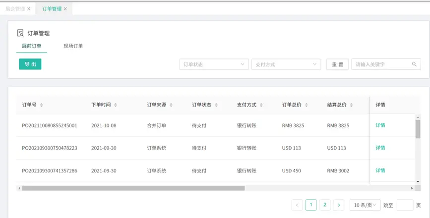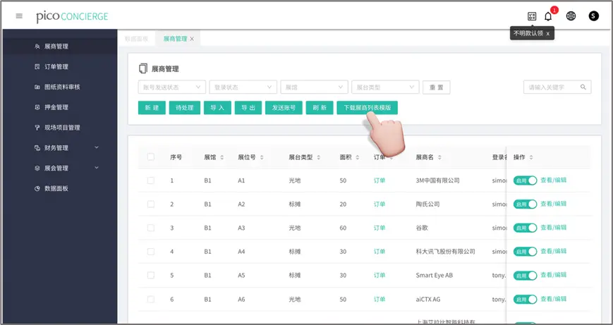 展商管理(lǐ):導入參展商數據、新建展商、啓用(yòng)禁用(yòng)展商、導出展商信息
