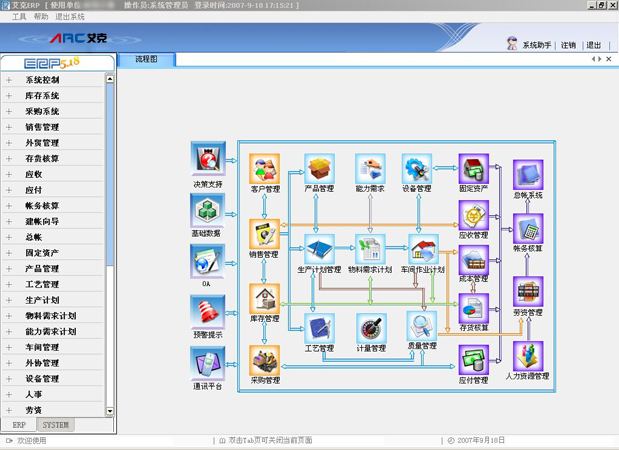 艾克 ERP 是艾克公司面向中小(xiǎo)型制(zhì)造業(yè)推出的(de)企業(yè)資源計(jì)劃綜合軟件(jiàn)管理(lǐ)系統。該系統基于MRP II 核心,實現物(wù)流、資金(jīn)流、信息流、OA、報警、短信和(hé)通訊平台的(de)集成化管理(lǐ)。